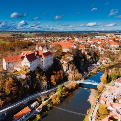 30 Km. Město založené husity. Podzemní chodby, zoo, nejlepší zmrzlina a romantické náměstí, časté kulturní akce.