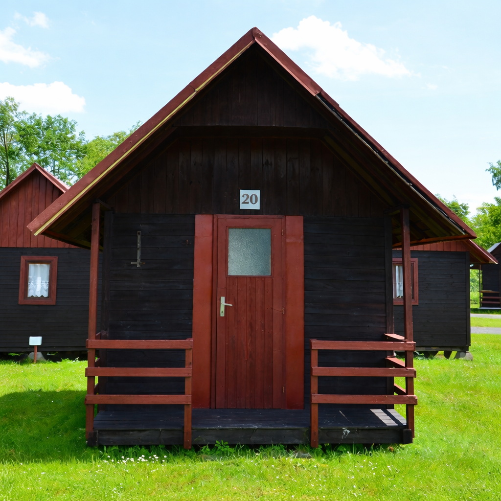 Turistické chatky čtyřlůžkové jsou chatky vybavené dvěma palandami, šatní skříní, stolkem, židlemi. Sprchy a wc společné. Součástí jsou sdílené venkovní grily. Dřevo na podpal si můžete zakoupit na recepci. Ceník